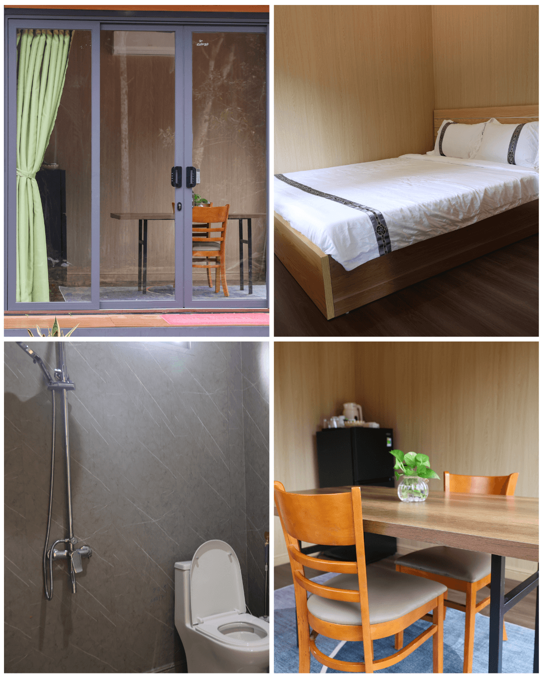 Tucked away in nature, our Forest View Bungalow is designed for calm and comfort. Inside, you’ll find a double bed, mini-fridge, and blackout curtains to support deep rest and recovery.